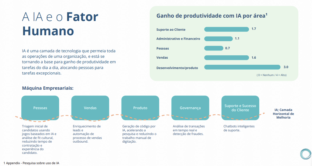 Assim, a proposta do report não é discutir a tecnologia de IA em si, mas sim como ela está afetando os processos e as discussões estratégicas na construção de empresas de alto crescimento.